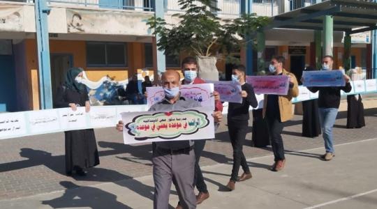 وقفة احتجاجية لمعلمي مدارس "الأونروا" بخان يونس