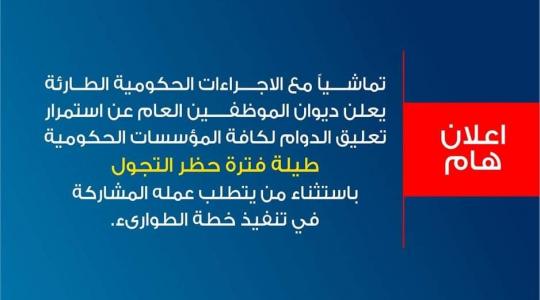 ديوان الموظفين يعلن استمرار تعليق الدوام باستثناءات