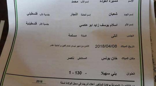 مواطن يسمي مولودته "مسيرة العودة"