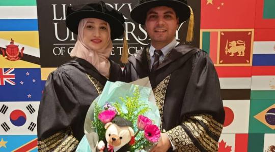 أحمد ودعاء.. زوجان جمعها الحب والعلم فنالا الدكتوراة وشهادة التميز الأكاديمي