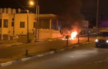 إشعال النار بمركبة مستوطنين في قرية عين يبرود
