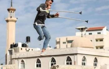 بقوة قلب.. "عليوة" يمارس رياضة الباركور بقدم واحدة