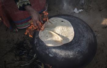الحاجة "النجار" تعد خبز "الصاج" لمتظاهري العودة وعينها على "سلمة"