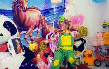 على طريقته.. "عمو علوش" مهرج غزِّي يُسعِدُ الأطفال
