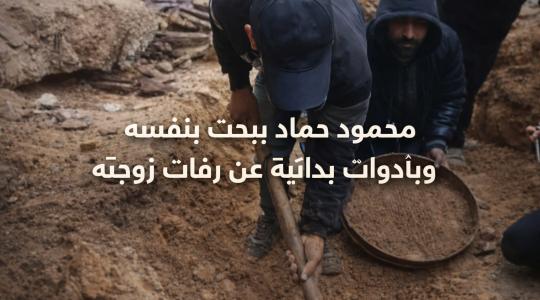 الغزي محمود حماد يبحث بنفسه وبأدوات بدائية عن رفات زوجته وأبنائه